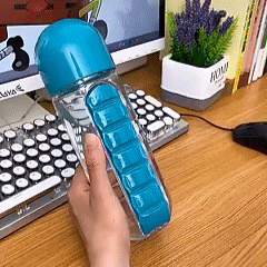 Daily Use - The convenient daily organizer features a built-in pill organizer so you can always cap your potions or even the lid. The water bottle pill box is perfect for traveling, laying in bed, home, work or outdoor activities pill organizer storage.