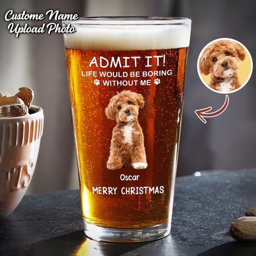 Elevate your drinking experience with our Custom Photo Life Would Be Boring Without Me Dog Print Beer Glass. Perfect as a gift for yourself or your beer-loving friends, this sophisticated glass features a unique dog design and can be customized with your own photo. Cheers to a life less ordinary.