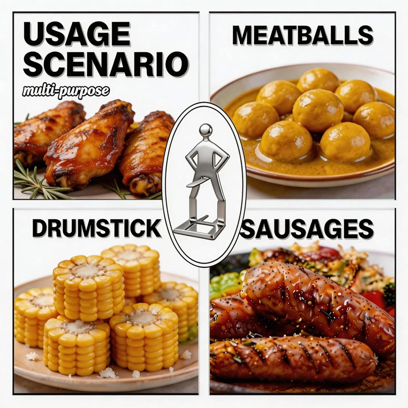 Funny Human-Shaped Design 🕺: The ingenious human-shaped design transforms sausages into "BBQ miniature figures," creating a visually appealing and eye-catching effect! 📸 Even Heating Structure 🔥: The 3D support design ensures even heating, preventing burning and locking in flavor and juices for a more delicious bite.