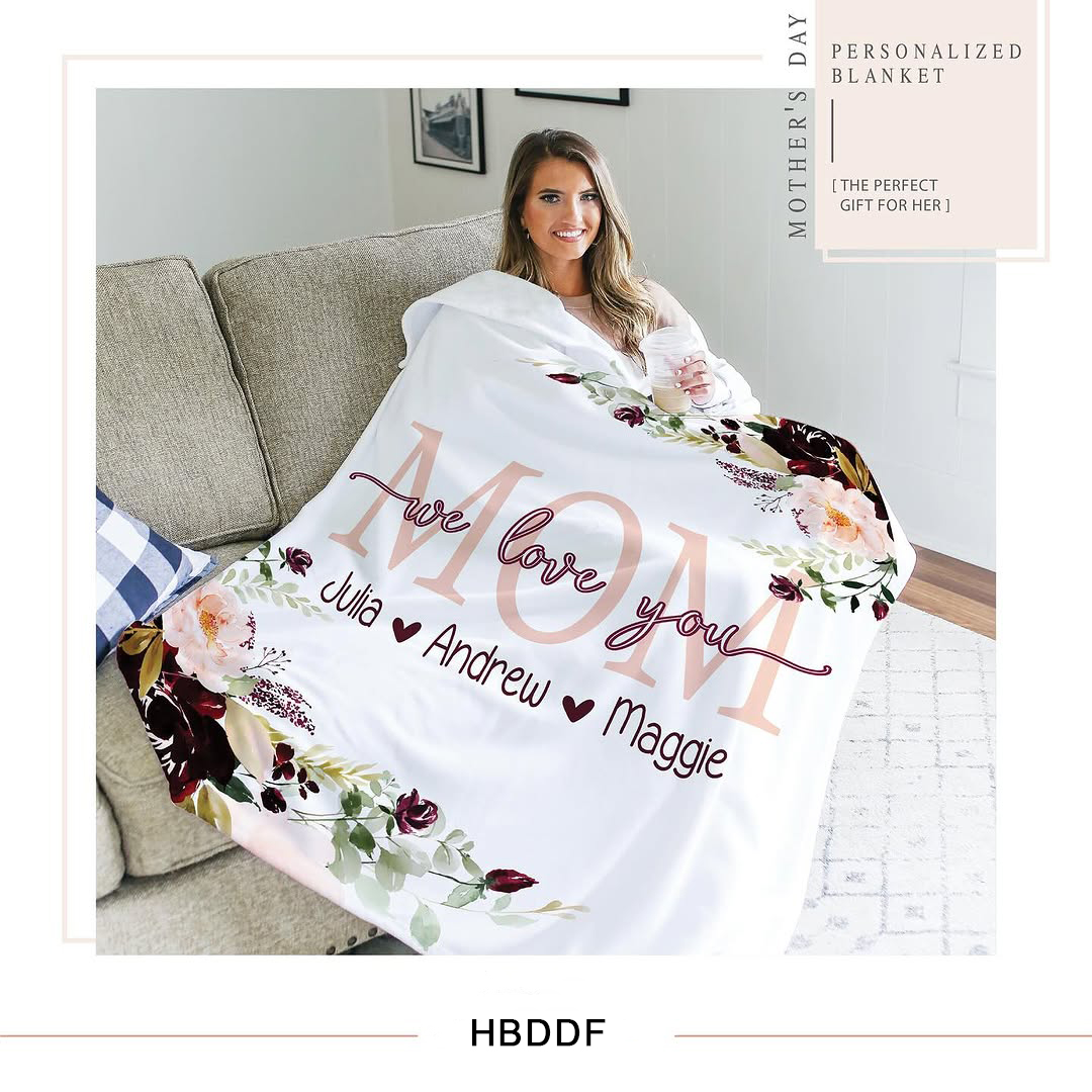 Mom We Love You, Mother's Day Gift, Christmas Present, Floral Style Blanket, Personalized Mom Gift, Personalized Gift For Grandparent,