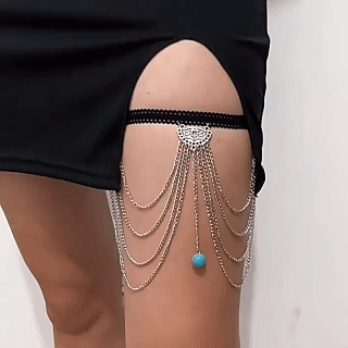 This multi-layer metal chain turquoise stretch leg chain combines wild tension with comfortable wear.Based on medical grade stretch silicone fibers, they are highly elastic and resilient, fitting snugly around the leg without feeling constricted, and staying in place during strenuous exercise.