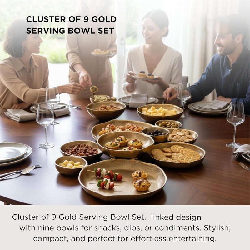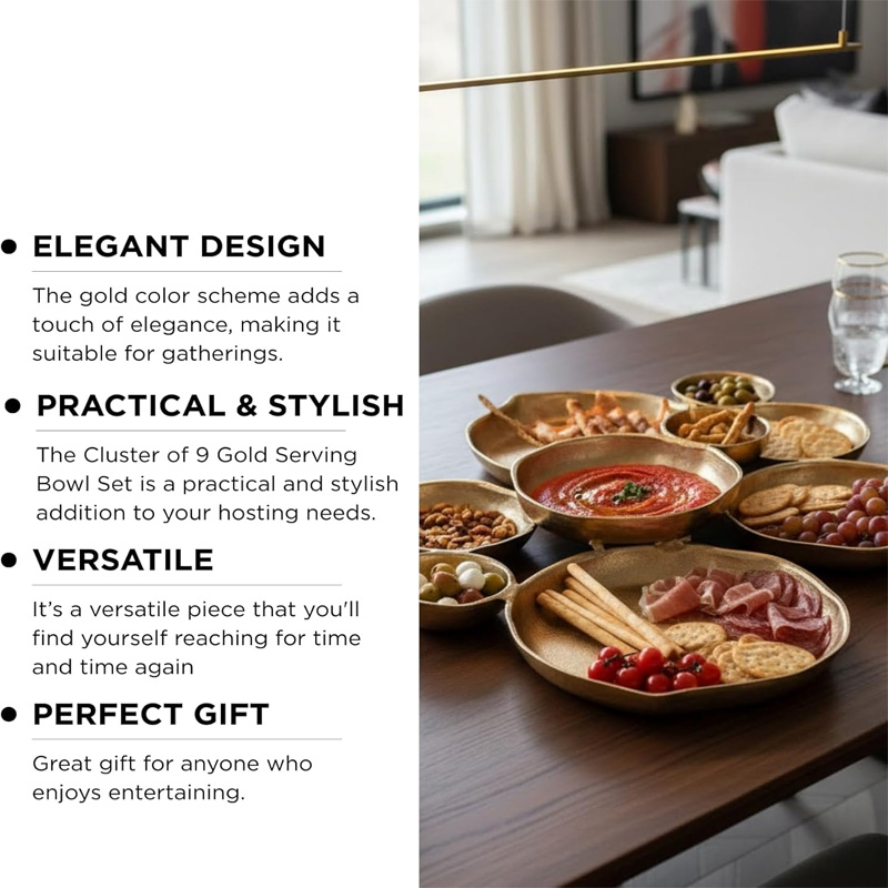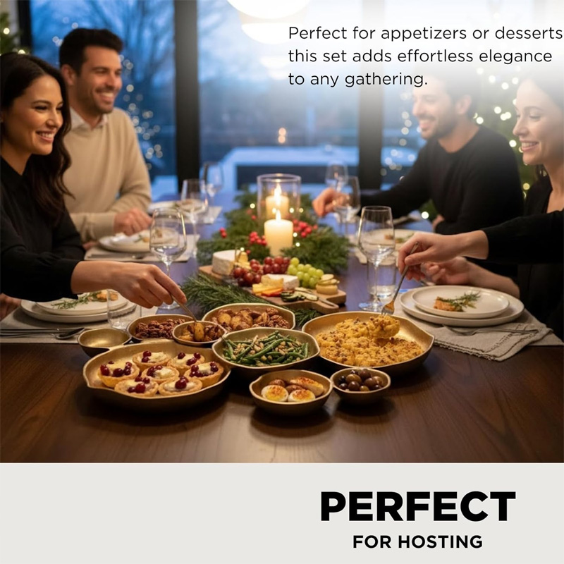 🍴 Family Gatherings: This nine-piece gold plate set is perfect for family gatherings and banquets, adding warmth and elegance to your table and letting your loved ones feel your thoughtfulness and taste.