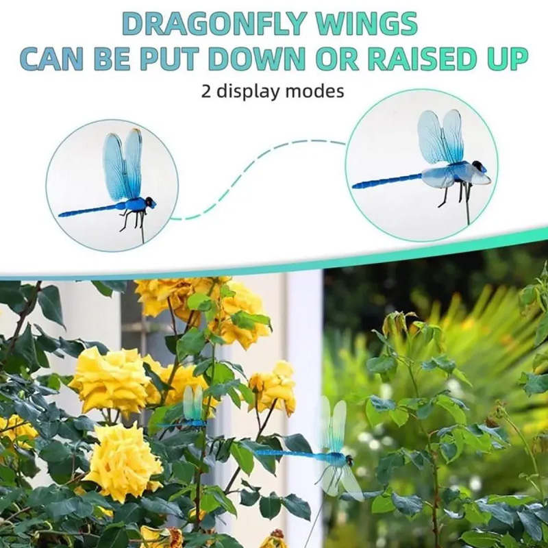 Realistic Design 🎨: Each dragonfly is made of high-quality materials with exquisite details, making it seem as if a real dragonfly is perched in your yard. The lifelike wings and colors reproduce the beauty of nature, bringing a vivid decorative effect.