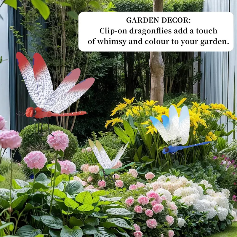 The dragonfly features a convenient clip on its back, easily securing it to garden branches, windowsills, fences, or other outdoor decorations. It's secure and reliable, adding a touch of nature anytime, anywhere.