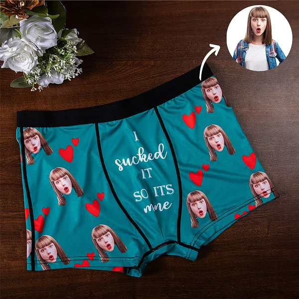 [FUNNY AND PLAYFUL MESSAGE]: The "I Sucked It So It's Mine" message on the boxer brief adds a cheeky and playful touch. Combined with the love hearts, it creates a funny and lighthearted atmosphere. It's a delightful way to express your sense of humor and show your partner that they are cherished.