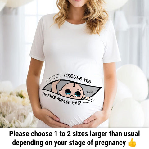 ✨ Celebrate Your Pregnancy Journey with the "Excuse Me… Is It Yet?" Maternity Shirt