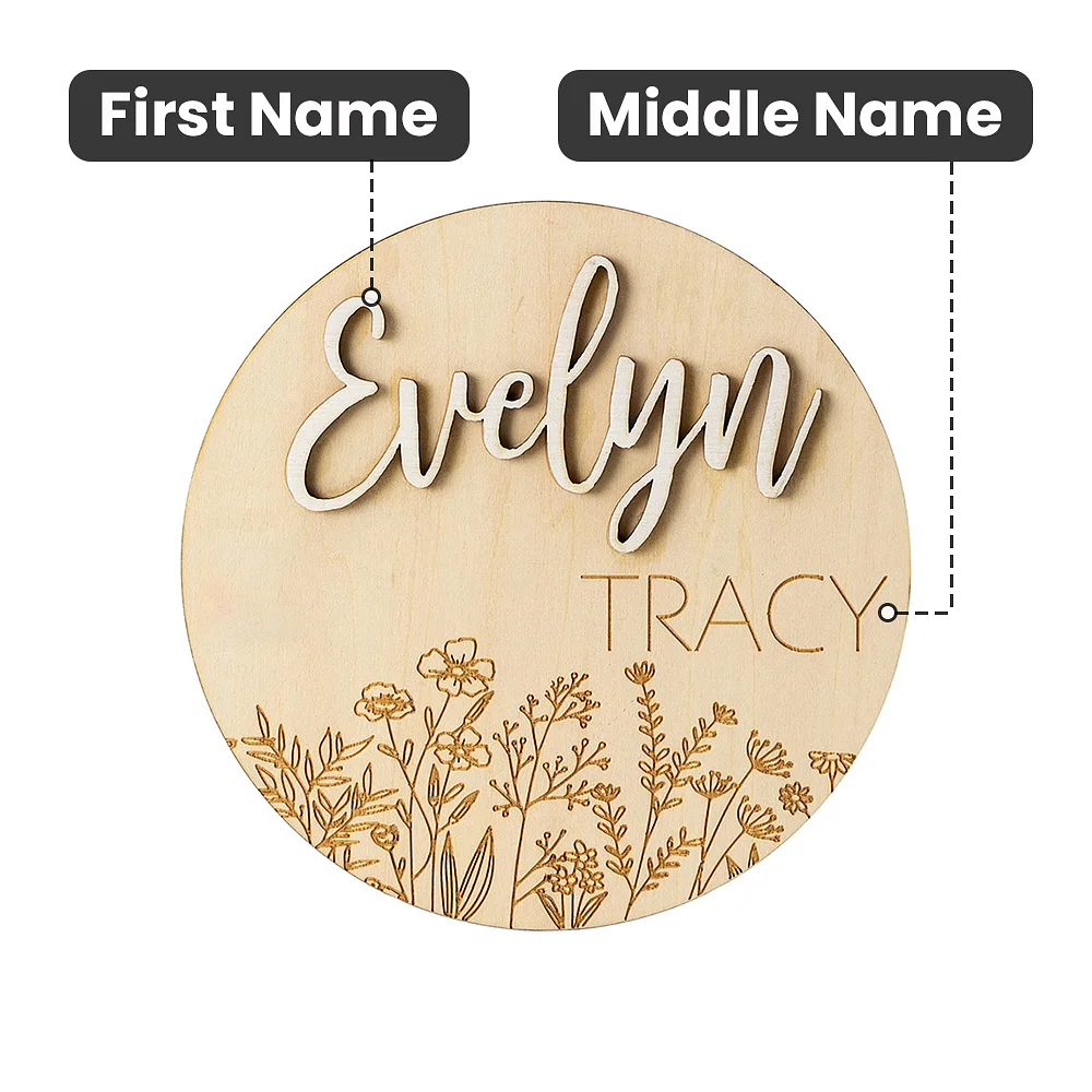[CUTE BIRTH ANNOUNCEMENT]: These 3D name plaques are great as a baby's first photo props, room decor, and keepsakes! They are made from premium basswood boards and feature a cursive 3D name and engraved middle name. That means they'll last for years and be durable. The bottom is engraved with fun wildflowers, adding the perfect touch for your little one. Perfect for announcing your little one's arrival to your family and friends, social media accounts, maternity photos, and keepsakes.