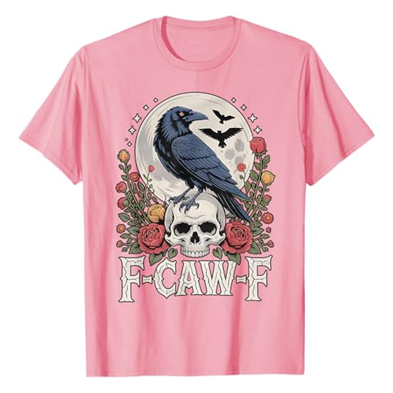 🎨 The crow and floral print is bold and artistic, creating a striking visual impact!