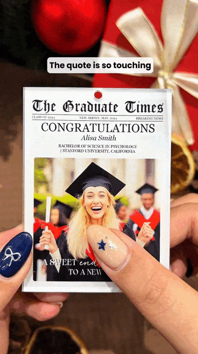 Celebrate the milestone of graduation with The Graduate Times - A Sweet Ending To A New Beginning Personalized Acrylic Photo Ornament! This unique and heartfelt Personalized Graduation Ornament is a perfect way to commemorate a special achievement. Whether it’s for high school or college, this ornament makes an ideal High School Graduation Gift or College Graduation Gift for him or her. Personalized with a photo, it’s a meaningful keepsake that will remind the new graduate of their accomplishments and the exciting journey ahead. A thoughtful Graduation Gift for your loved ones as they step into their new beginning!
