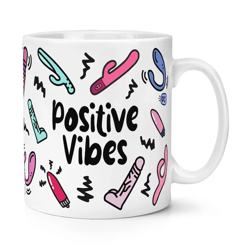 Even drinking water can vibrate! This mug with a sex vibrator graffiti design brings a little "vibration" with every sip.